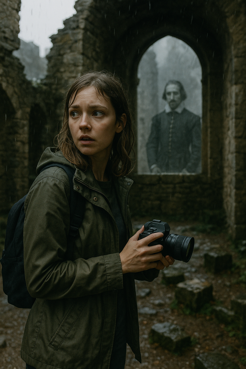 Sateisena iltapäivänä hän kiipesi mutaisella polulla ylös ja astui sisään. Linna oli puoliksi raunioitunut – yksi torni kallistui vaarallisesti, sen katto oli romahtanut kauan sitten. Hän käveli kaikuvien käytävien läpi, otti kuvia kaarevista ikkunoista ja sammalen peittämistä kivistä. Mitään epätavallista. Mitään pelottavaa.