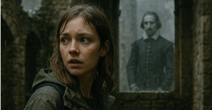 Ei turisti, ei moderni vierailija. Hänellä oli yllään tumma kauluspaita, korkeat saappaat ja 1500-luvulta peräisin oleva kaulus. Hänen kasvonsa olivat kalpeat, silmät kuopat, ja hän tuijotti suoraan kameran linssiin.