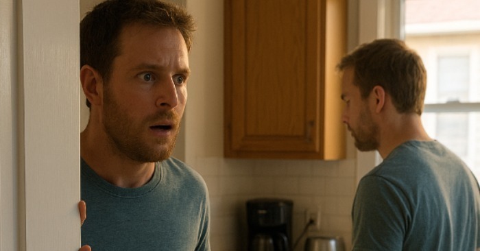 Kaksoisolentoni kääntyi hitaasti. Hän hymyili – minun hymylläni, mutta rauhallisemmin, terävämmin. ”Aamiainen”, hän sanoi. Hänen äänensä oli täsmälleen sama kuin minun. ”Istu. Tarvitset voimaa.”