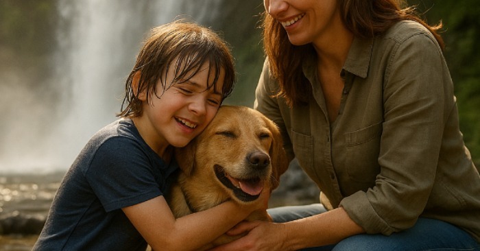 Anna ei voinut uskoa silmiään – vanha koira seisoi veden yllä tasapainotellen hännällään, hampaat puristettuina lapsen takin hihaan.