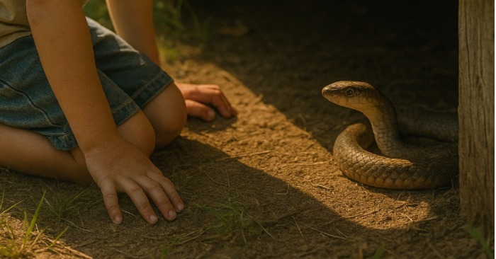 Kuukautta myöhemmin, kun poikani leikki puutarhassa, kuulin pehmeän kahinan. Pieni käärme ryömi ruohikosta. Sama väri, samat silmät. Hän ei pelännyt – hän vain katsoi meitä, ikään kuin olisi tunnistanut meidät.