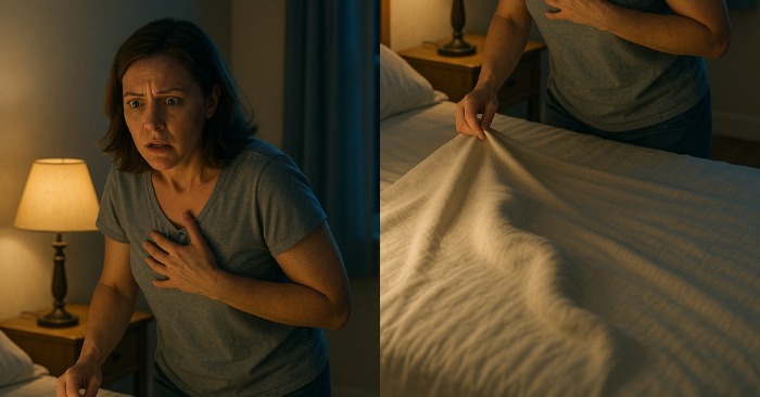 Ohut, pehmeä ääni — kuin jokin liikkuisi lakanalla.