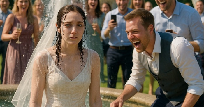 Vesi valui hänen poskilleen — oliko se suihkulähteestä vai häpeästä, ei kukaan tiennyt.