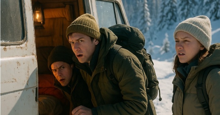 Kolme retkeilijää — Anna, Miguel ja Thomas — lähtivät vaellukselle vanhaa metsureiden polkua pitkin.