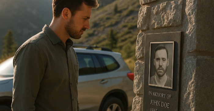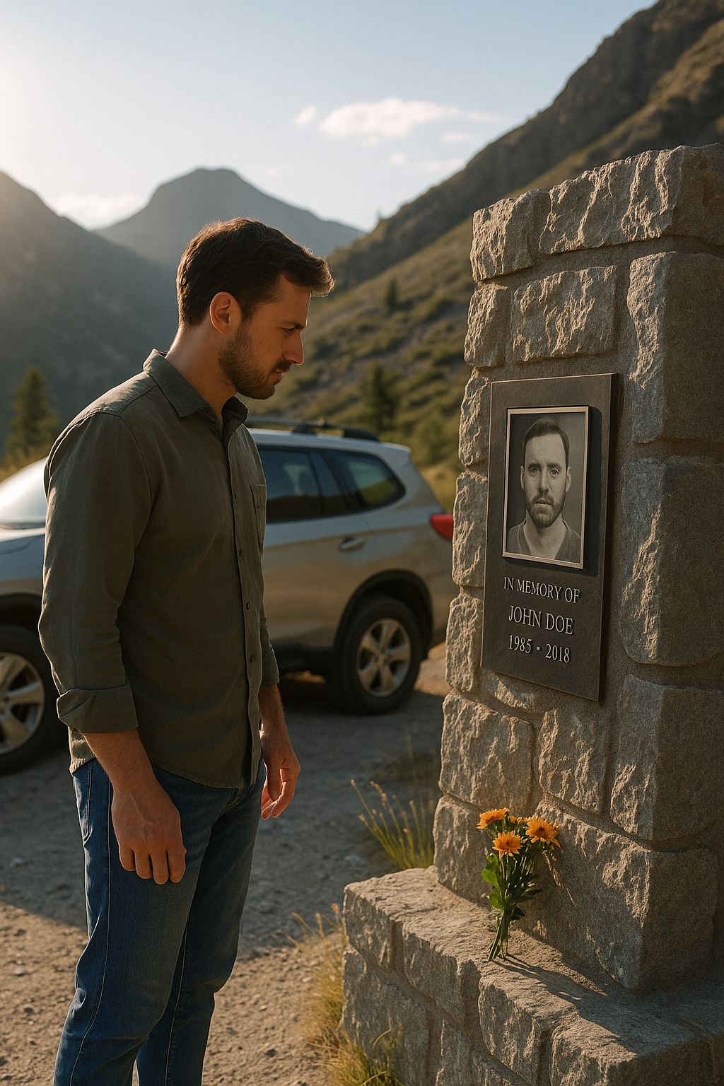 Läheisellä mutkalla seisoi muistomerkki — kivinen laatta, jossa oli kuva ja kaiverrus. Joku oli kuollut siellä vuosia sitten.