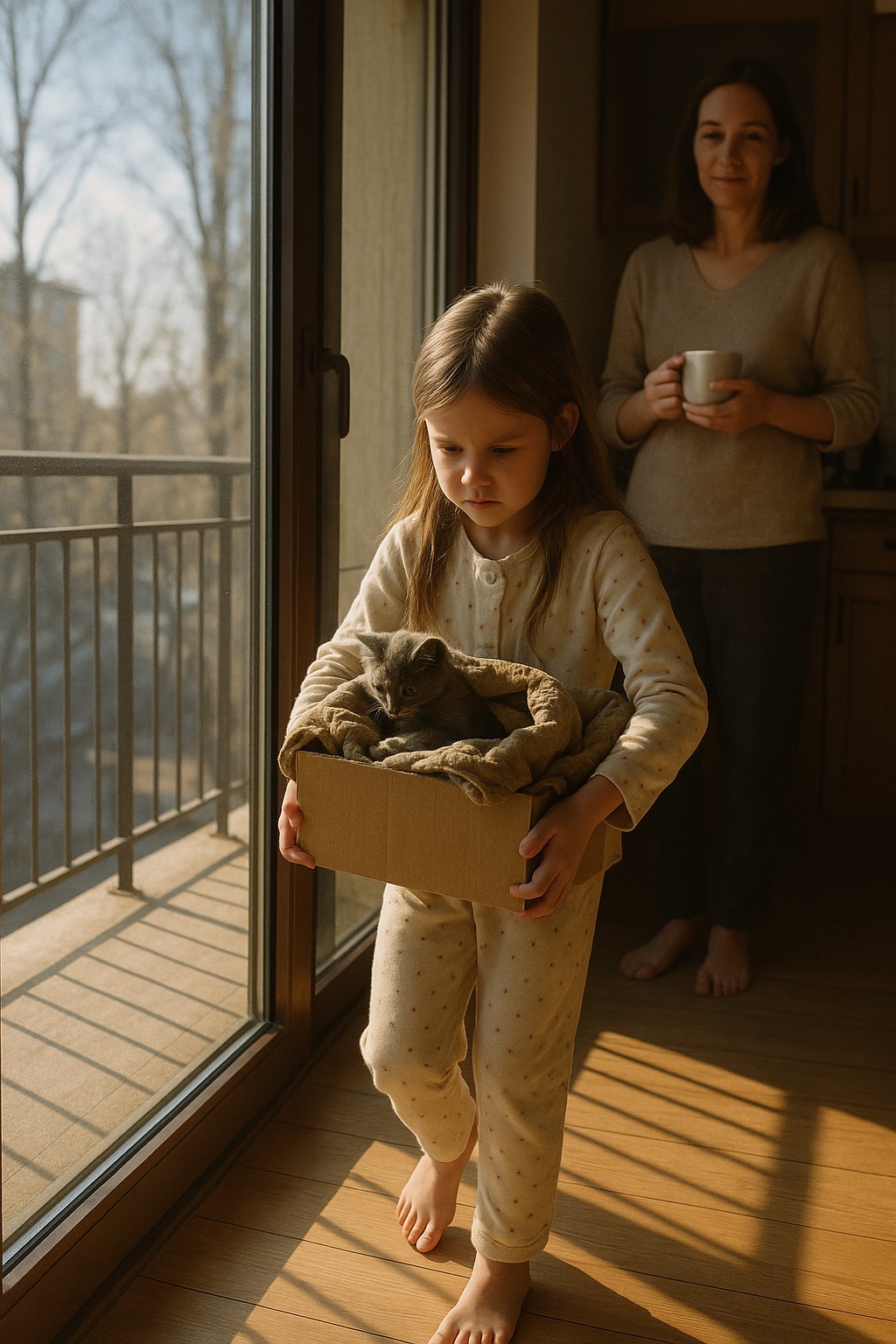 Niinpä Lucy keksi suunnitelman: pentu asuisi parvekkeella. Hän toisi laatikon, vanhan peiton, kulhon. Vain siihen asti, kunnes se kasvaisi.