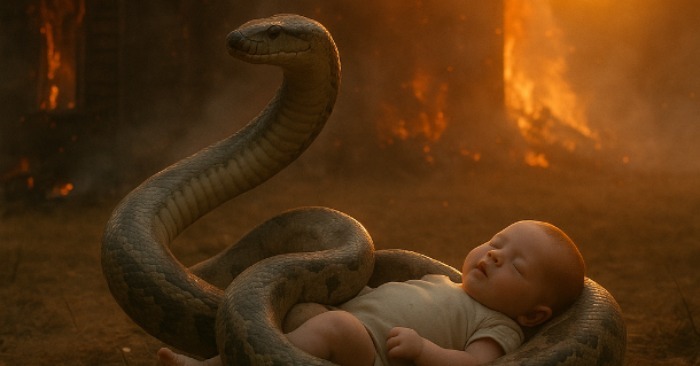Se ryömi esiin liekehtivän lattian alta ja liukui kohti pinnasänkyä, jossa vauva värisi liekkien alla. Liekit koskettivat jo lakanoita. Ja yhtäkkiä – käärme kiertyi vauvan ympärille.