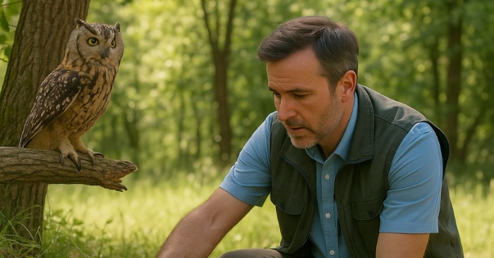 Eräänä keväänä joku toi hänelle pöllön, jonka siipi oli katkennut. Se ei pystynyt lentämään, istui hiljaa ja nosti katsettaan vain satunnaisesti.