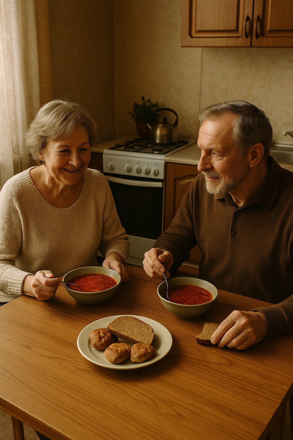 Seuraavana päivänä Anna teki borssikeittoa — sakeaa ja tuoksuvaa, kuten hänen äitinsä valmisti. Hän paistoi pihvejä, leikkasi leipää, kattoi pöydän — ja huomasi kaksi lautasta. Hetken epäröinti. Sitten hän soitti numeron, jonka mies oli joskus antanut “varmuuden vuoksi.”