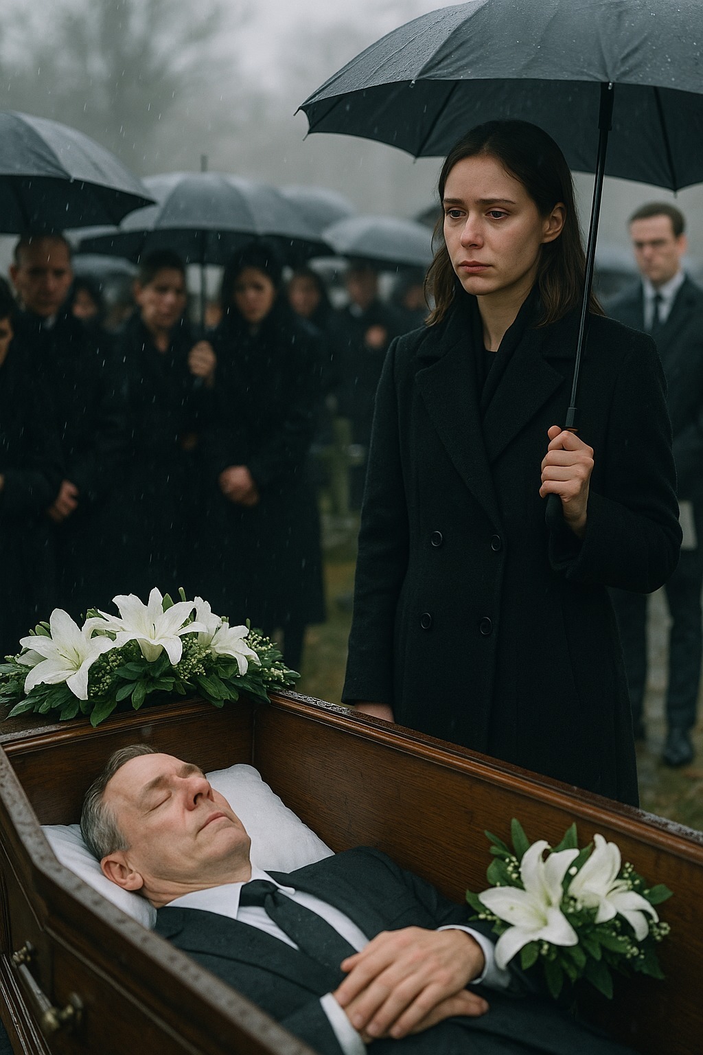 Hän ei itkenyt — katsoi vain märkää maata ja kylmiä seppeleitä.