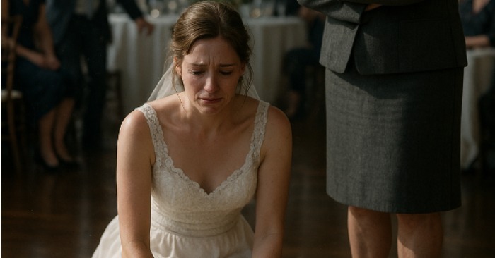Vain hän seisoi nurkassa — nuori morsian valkoisessa mekossa, kädet hieman vapisten.