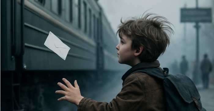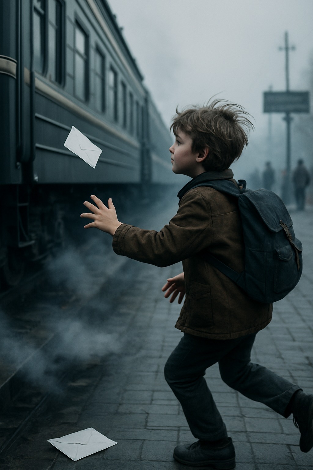 Laiturilla seisoi noin kymmenvuotias poika — kulunut takki, reppu selässä, kirjekuori kädessä.