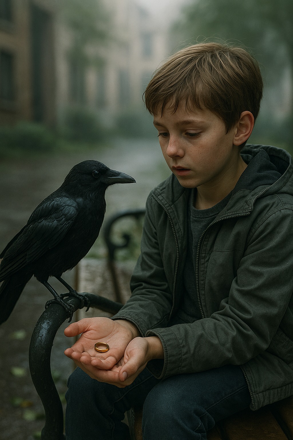 Ja ulkona, kevyessä sateessa, sama varis istui ikkunalaudalla — märkä, ylpeä, kuin tietäisi palauttaneensa jotakin arvokkaampaa kuin kulta.