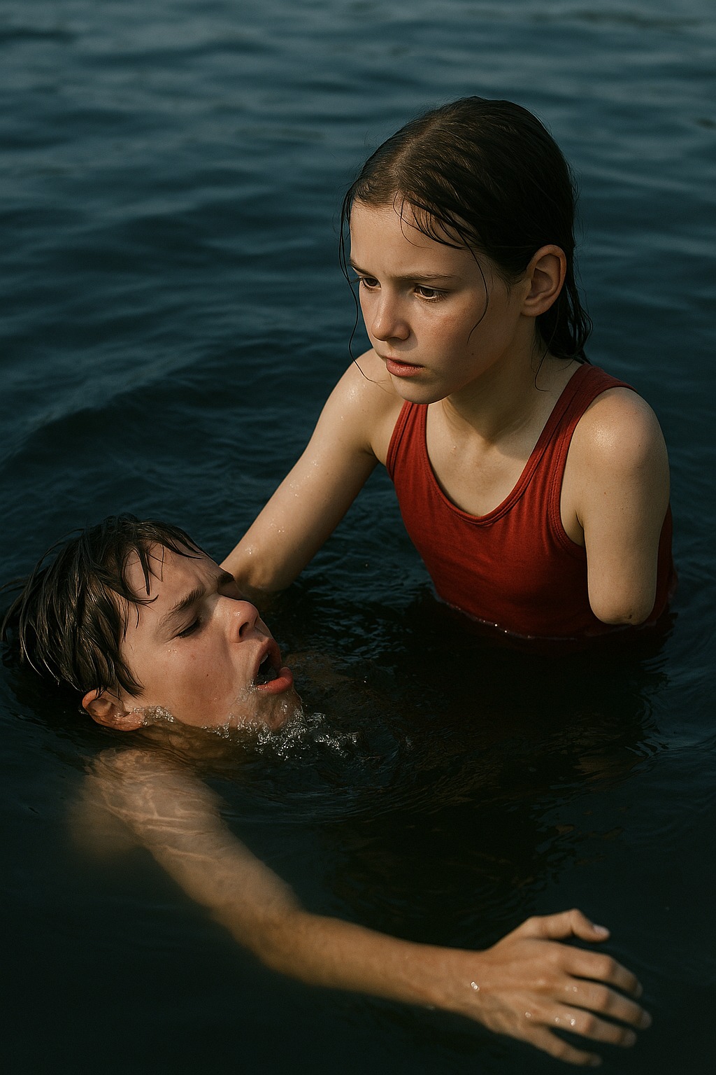 Kun he pääsivät rantaan, lapset vetivät Diman ylös. Hän yski, itki, hengitti.