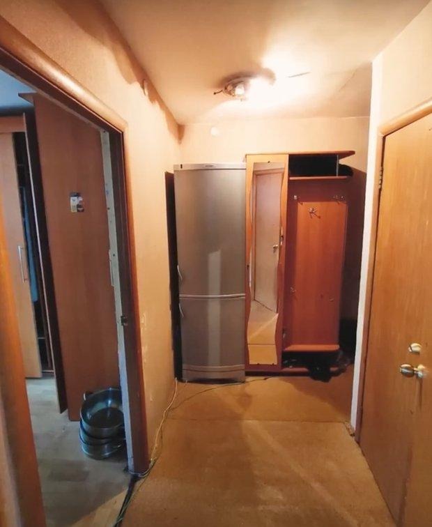 Erikoisin kohta — vanha “jääkaappi” ikkunan alla olevassa syvennyksessä, jäänne menneiltä ajoilta. Oikea jääkaappi seisoi… käytävässä.