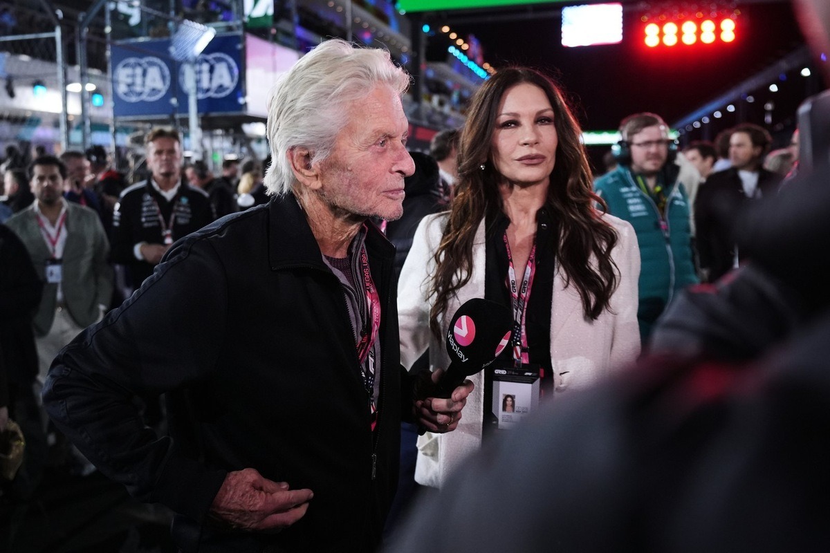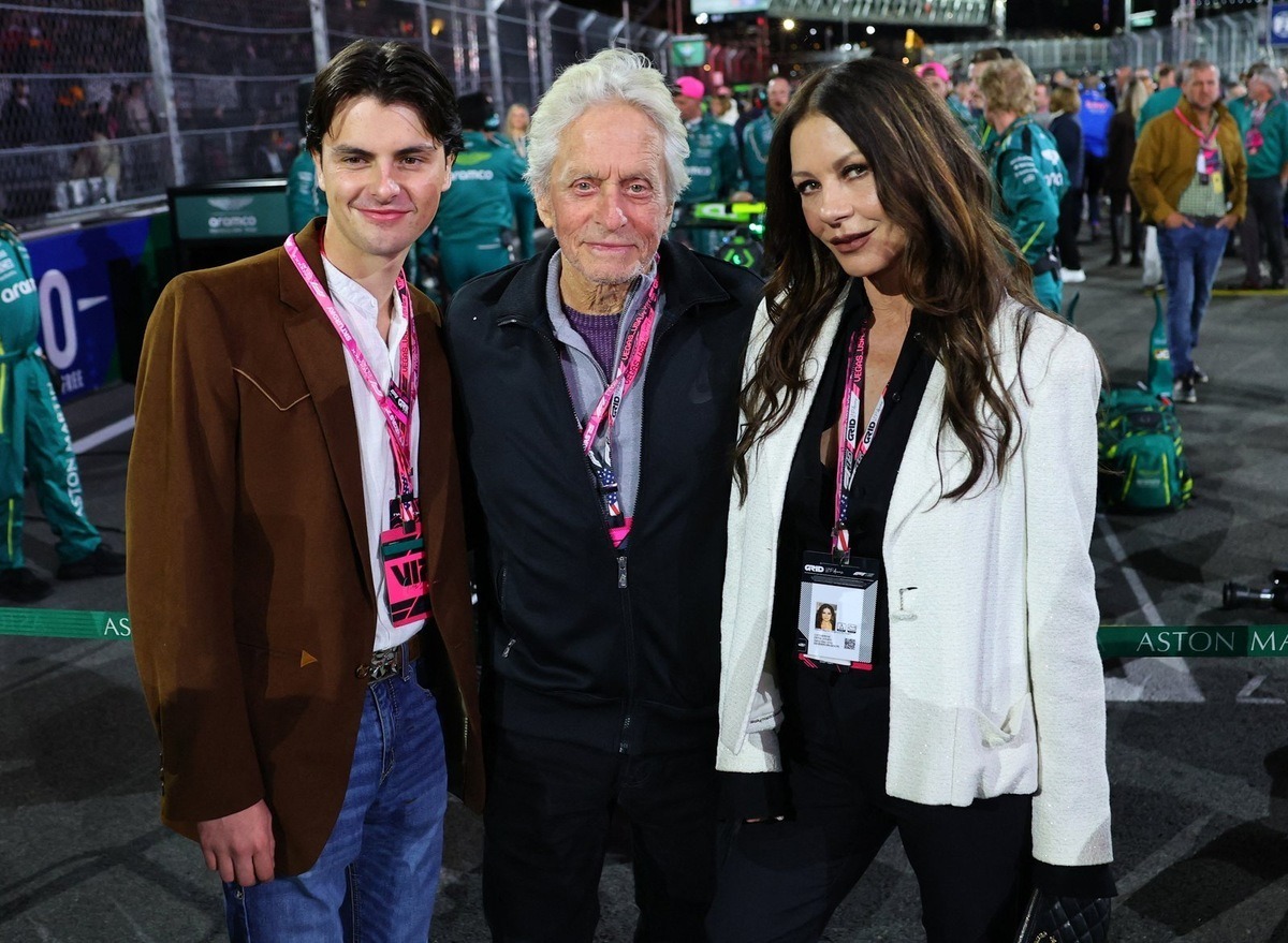 Las Vegasin F1-osakilpailu muuttui todelliseksi julkkisparaatiksi, ja jälleen huomion keskipisteessä oli Douglasien perhe. 81-vuotias Michael ja 56-vuotias Catherine Zeta-Jones ilmestyivät tapahtumaan yhdessä poikansa Dylanin kanssa — ja herättivät suurta huomiota paddockilla.
