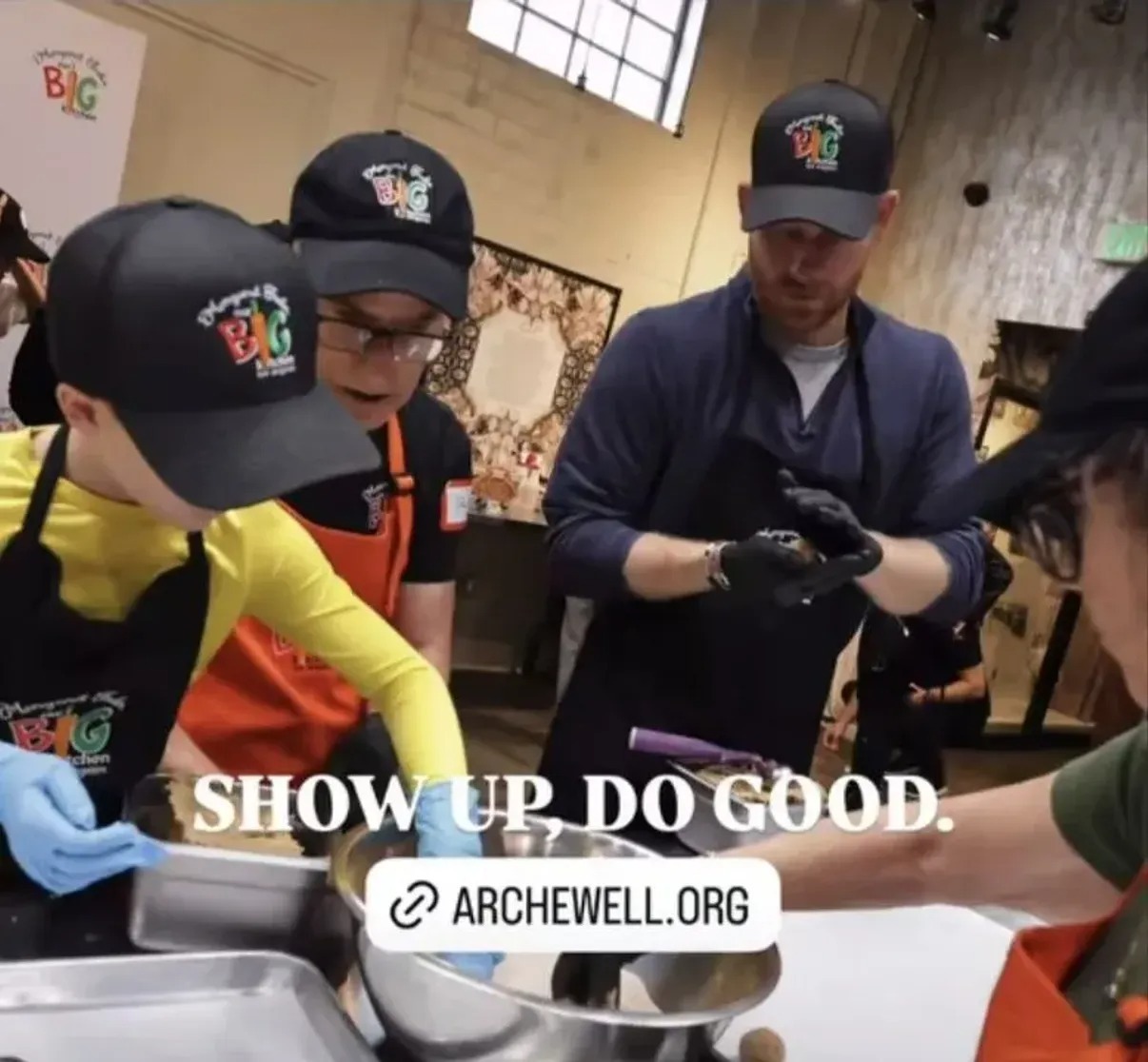 Stories-julkaisussaan* Meghan jakoi kuvia, joissa hän ja Harry pakkaavat ruokaa rasioihin ja auttavat vapaaehtoisten kanssa keksien valmistuksessa. Kuvissa näkyvät myös parin lapset — kuusivuotias Archie ja nelivuotias Lilibet, jotka on puettu samanlaisiin esiliinoihin ja lippalakkeihin, joissa on järjestön tunnus. Näyttää siltä, että lapsetkin osallistuivat toimintaan.