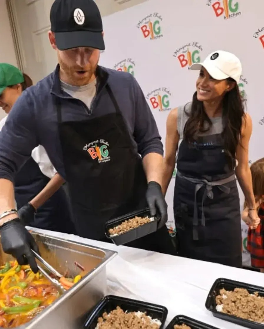 Pari vieraili Los Angelesissa sijaitsevassa Our Big Kitchen -vapaaehtoiskeittiössä — paikassa, jossa autetaan tarvitsevia lämpimillä aterioilla ja elintarvikkeilla. Kyseessä oli yksi heidän harvoista yhteisistä perhetilaisuuksistaan.