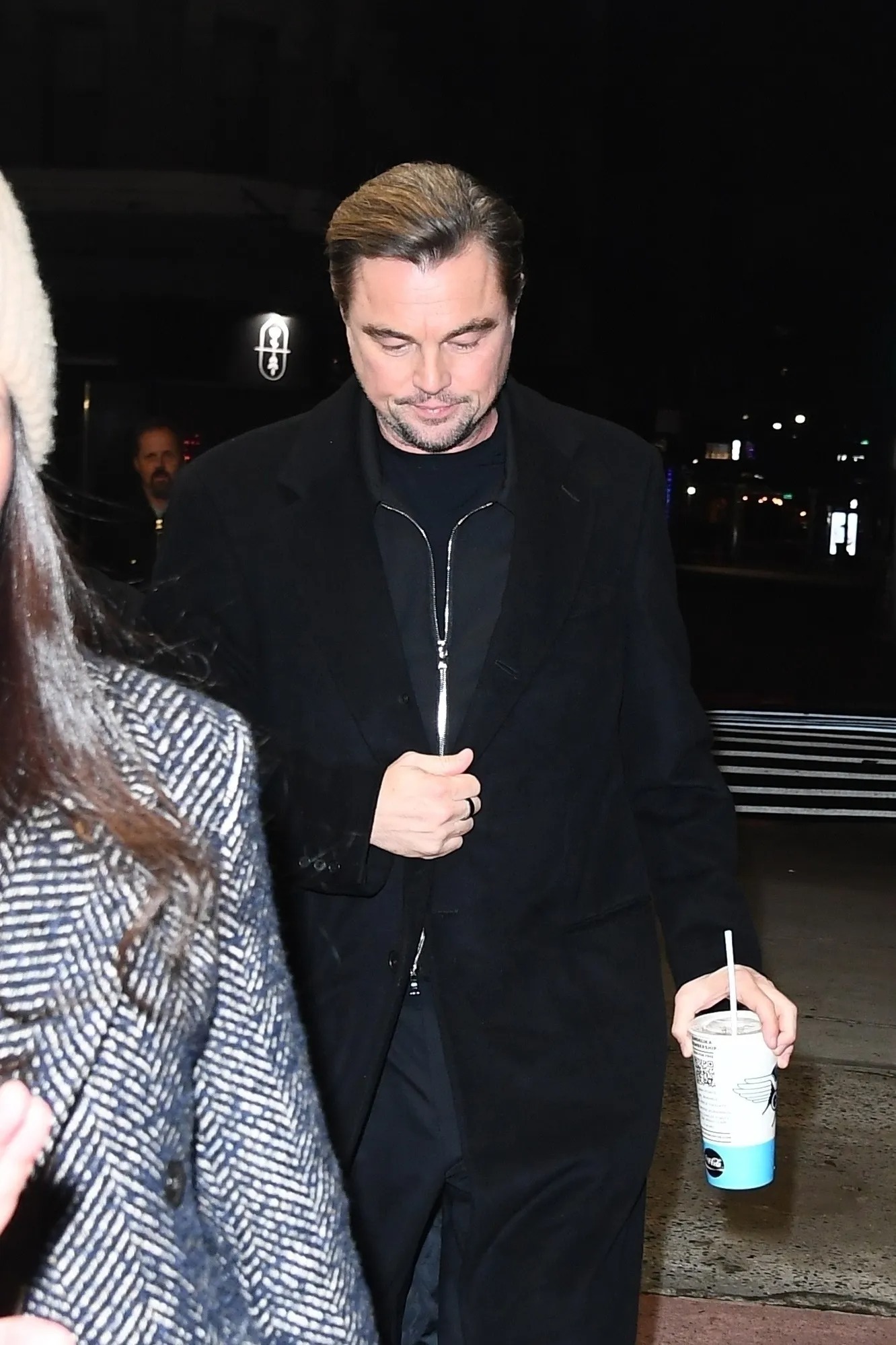 Kun hän poistui Village East by Angelikasta, hänen hiuksensa välkkyivät kauniisti valossa. Juoma kädessään hän kulki ohitse fanijoukon, joka yritti kuvata häntä. DiCaprio valitsi illanviettoon täysin mustan asun. Minimalistinen tyyli korosti hänen rauhallisuuttaan.
