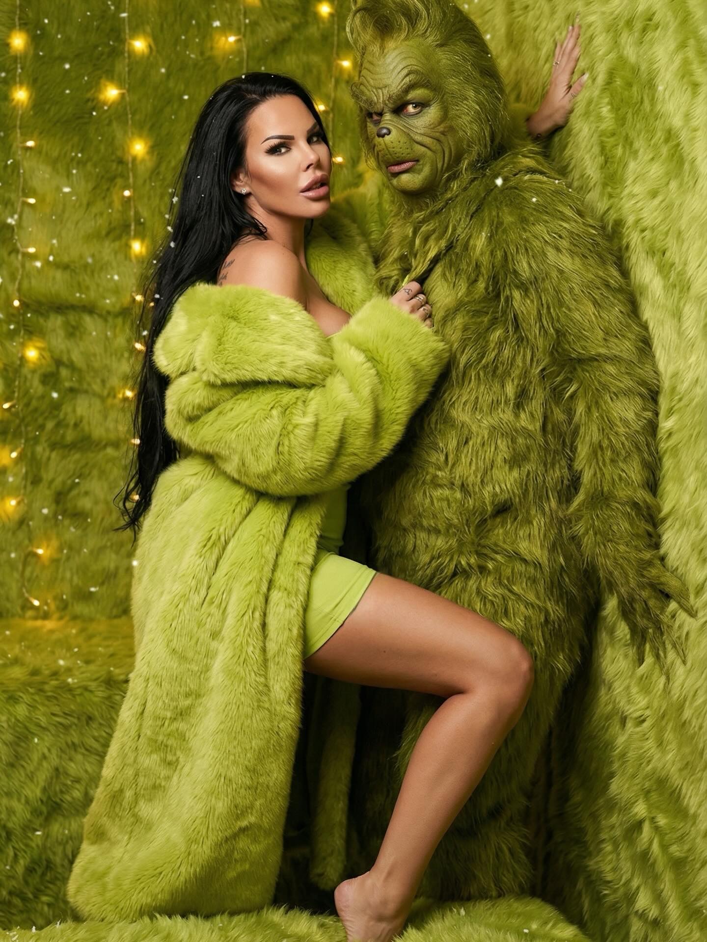 Tällä kertaa Suvi päätti kuitenkin yllättää ja vaihtoi hiekkadyynit joulutunnelmaan. Hän julkaisi Instagramissa kuvia, joissa poseeraa vihreässä minimekossa, tonttulakki päässään ja stay up -sukat jalassaan. Kuvissa huomio kiinnittyy nopeasti myös hänen seuralaiseensa: Suvin takana seisoo Dr. Seussin tarinoista tuttu joulua vihaava Grinch-hahmo.