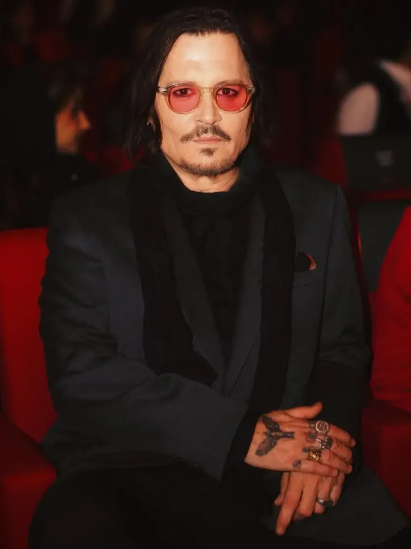 Depp poseerasi valokuvaajille hillityssä harmaassa puvussa ja paidassa, täydentäen asun punaisilla linsseillä varustetuilla laseilla — yksityiskohdalla, josta tuli välittömästi illan pääkatseenvangitsija. Hänen kasvoillaan ei näkynyt halua miellyttää tai todistaa mitään. Päinvastoin — rauhallisuutta, itsehillintää ja vaikutelmaa ihmisestä, joka on kokenut liikaa esittääkseen rooleja kameran ulkopuolella.
