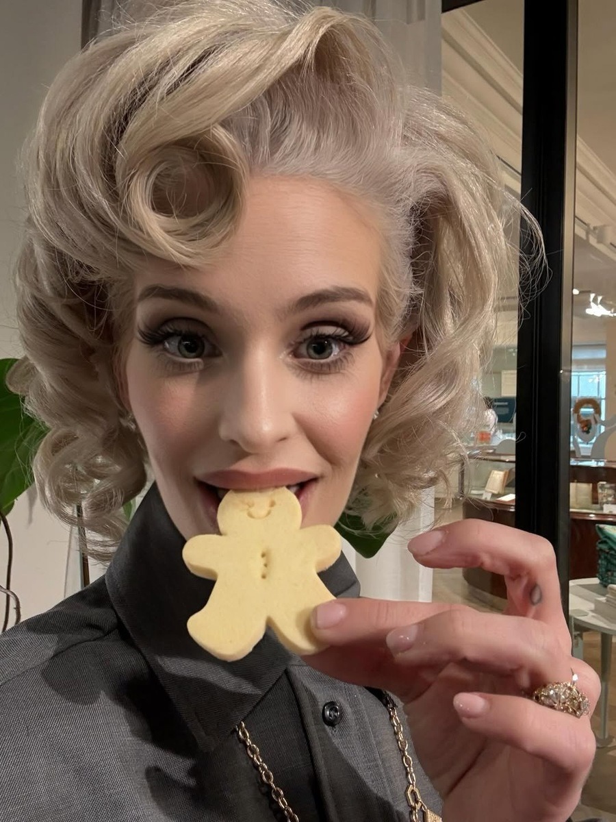 Televisiopersoonan tyyli oli selvästi saanut vaikutteita klassisesta Hollywoodista. Runsaat kiharat, huolellisesti muotoiltu kampaus ja harmaa puku loivat retroglamourin tunnelman. Musta vyö ja pitkä kaulakoru toivat asuun ryhtiä. Voimakas meikki korosti kasvonpiirteitä ja teki kokonaisuudesta huomiota herättävän.