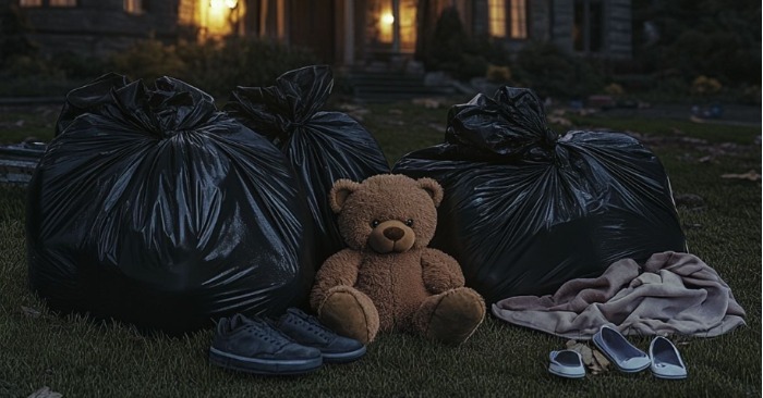 Kun tulimme illalla kotiin, hänen tavaransa olivat jätesäkeissä jalkakäytävällä.
