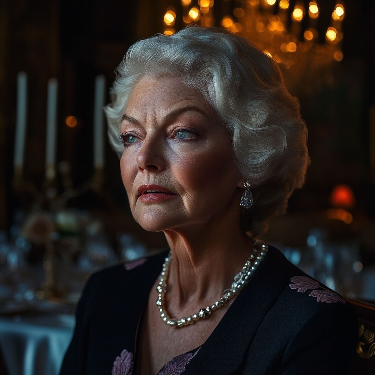 Patricia seisoi kuin kivettyneenä, lasi yhä kädessään, kuin joku olisi sammuttanut hänen oman valokeilansa.