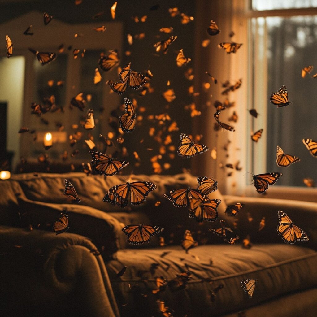 Ta komistas tagasi, vehkis paanikas kätega, kui liblikad mööda tuba lendasid. Ta karjus, värises, ahmis õhku, püüdis meeleheitlikult põgeneda nende kahjutute olendite eest.