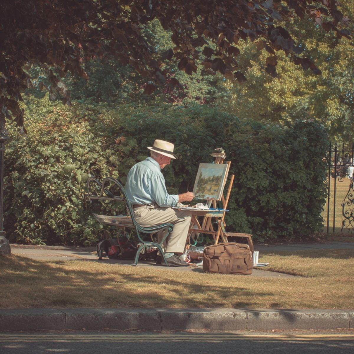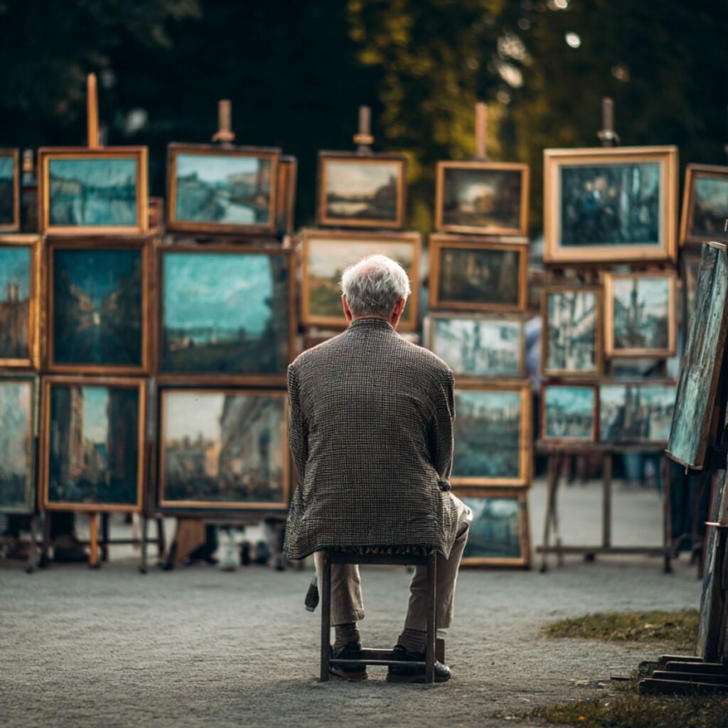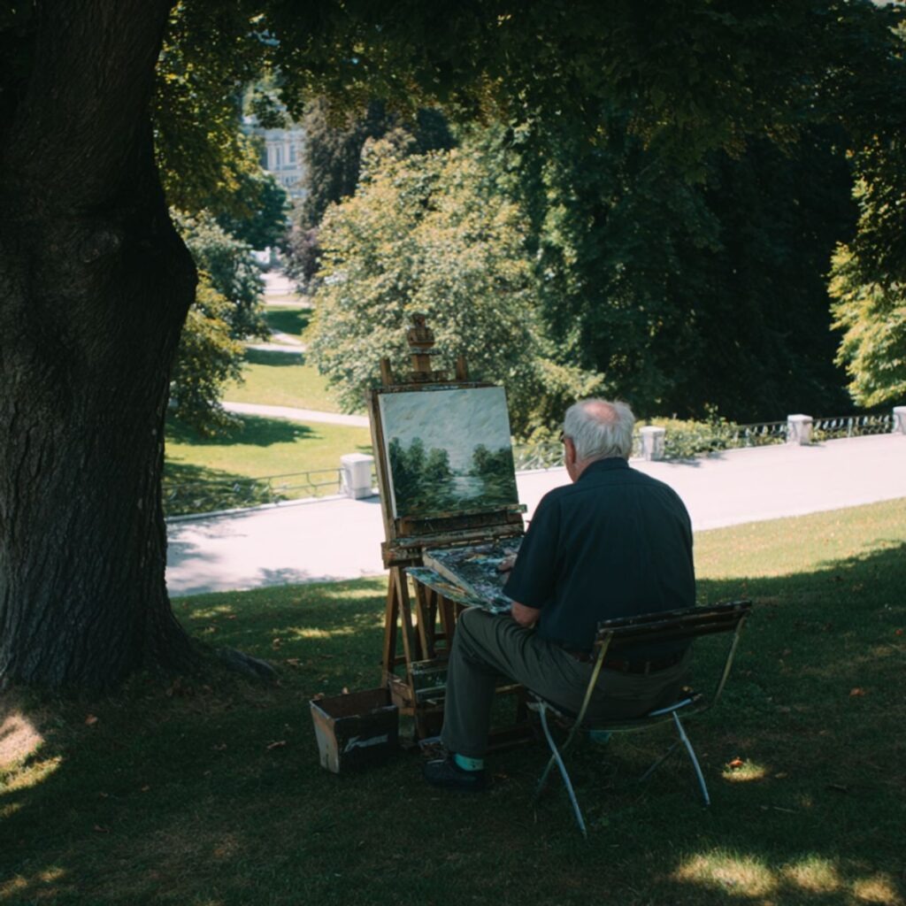 Aloin katsoa videoita, opetella tekniikoita. Työskentelin öljyväreillä – ne tuntuivat painavilta, todellisilta. Maalasin öisin, kun Emily nukkui. Sitten eräänä päivänä keräsin rohkeuteni ja vein muutaman kankaan puistoon.