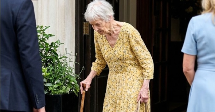 Hän käveli hitaasti, yllään vanha sininen mekko – siististi silitetty, mutta selvästi kulunut. Hänen hiuksensa oli kiinnitetty yksinkertaisella pinnillä, hänen kenkänsä eivät sopineet yhteen, ja käsissään hän piti haalistunutta kangaspussia, jonka kulmat olivat rispaantuneet ja vetoketjun lähellä oli tahra.