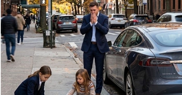Miljardööri saapui aikaisin hakemaan tytärtään koulusta — mutta näki hänet jalkakäytävällä, kodittoman tytön opettaessa häntä. Se, mitä tapahtui seuraavaksi, järkytti kaikkia.