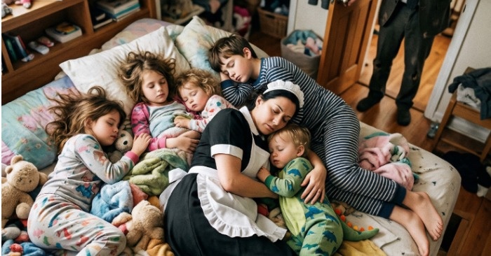 “On… yksi henkilö,” mies epäröi. “Nainen, joka siivoaa taloja. Ei kokemusta lapsista. Suostui palkan takia.”