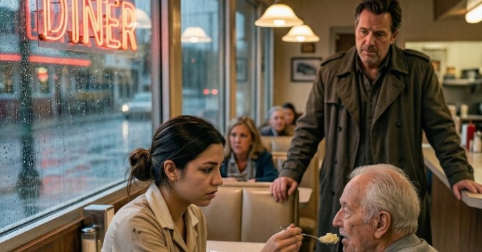 Sisällä aika tuntui painavalta. Penkit olivat halkeilleet ja teipillä korjatut. Lattia natisi jokaisella askeleella. Vanha radio soitti hiljaa country-kappaletta, sekoittuen sateen ääneen ikkunoita vasten. Ilmassa leijui palaneen kahvin, rasvan ja pesuaineen tuoksu — tuttu, lohduttava ja hieman surullinen.