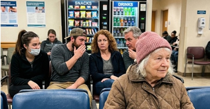 Vanha nainen istui odotushuoneen kaukaisessa nurkassa kylmällä muovipenkillä, melkein sulautuen harmaisiin seiniin ympärillään. Käsissään hän puristi vanhaa ruskeaa laukkua, kuin se olisi ollut ainoa asia, joka piti hänet kiinni tässä hetkessä. Hänen takkinsa oli liian ohut ulkona olevaan kylmyyteen, ja hänen kenkänsä olivat kuluneet ja halkeilleet.