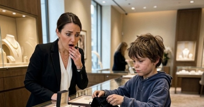 Vartija hypähti suojatakseen myymälää ja ajaakseen hänet pois — mutta myymälän johtaja jähmettyi pojan sanoista, jotka saivat kaikki asiakkaat hiljaisiksi.