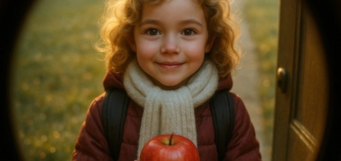 Jokainen aamu alkoi samalla tavalla. Valo suodattui puiden läpi, naapuritalojen ikkunat kimaltelivat kasteesta, ilma tuoksui raikkaalta ja makealta. Portillani oli aina omena. Joskus kirkkaanpunainen, joskus vaaleankeltainen, lämpimin auringonsätein.