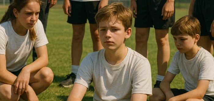 Keskipäivä. Koulun stadion sykki äänistä: pillejä, pallon pomppimista, oppilaiden huutoja, kuuman asfaltin ja tuoreen ruohon tuoksua. Kesä oli päättymässä, mutta aurinko paistoi yhä heidän silmiinsä heijastuen metalliverkkoaidasta. Kahdeksasluokka