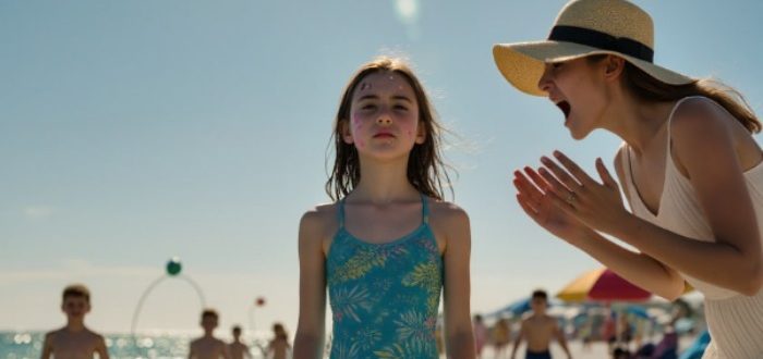 Aurinko paistoi hiekkaan niin kirkkaasti, että ilma kimmelsi kuumuudesta. Meri kimalteli, aallot liplattivat laiskasti rantaa ja ihmiset nauroivat huutaen veden pauhun yli. Lapset rakensivat linnoja, naiset levittivät aurinkovoidetta,