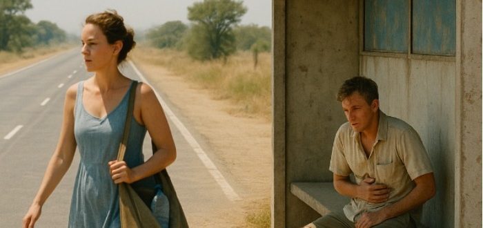 Helteä oli niin paljon, että ilma väreili tien yllä. Asfaltti suli, ja pysäkki keskellä maantietä näytti kangastukselta. Lisa palasi kotiin töistä — väsynyt, ärtynyt, haaveili vain kylmästä suihkusta.