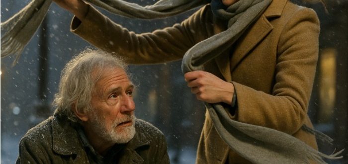 Lumimyrsky alkoi yllättäen. Tuuli pyöritti lunta, se narskui askelten alla, ja harvat ohikulkijat kiirehtivät suojaan. Nainen oli matkalla kotiin työvuoron jälkeen — väsynyt, jäässä, laukku kädessä ja lämmin