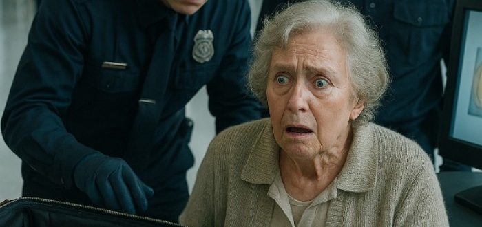 Se oli tavallinen päivä Münchenin lentokentällä. Turvatarkastuksen jono eteni hitaasti. Ihmiset haukottelivat, asettivat matkalaukkuja hihnalle, tarkistivat passeja. Kaikki oli rauhallista, kunnes iäkäs nainen astui portille — pieni, harmaassa